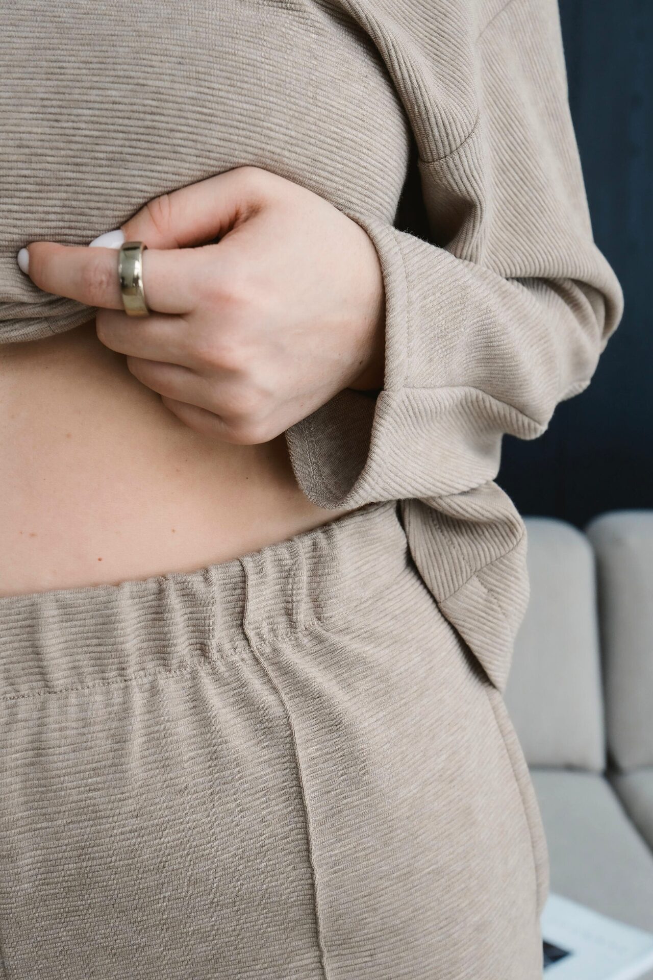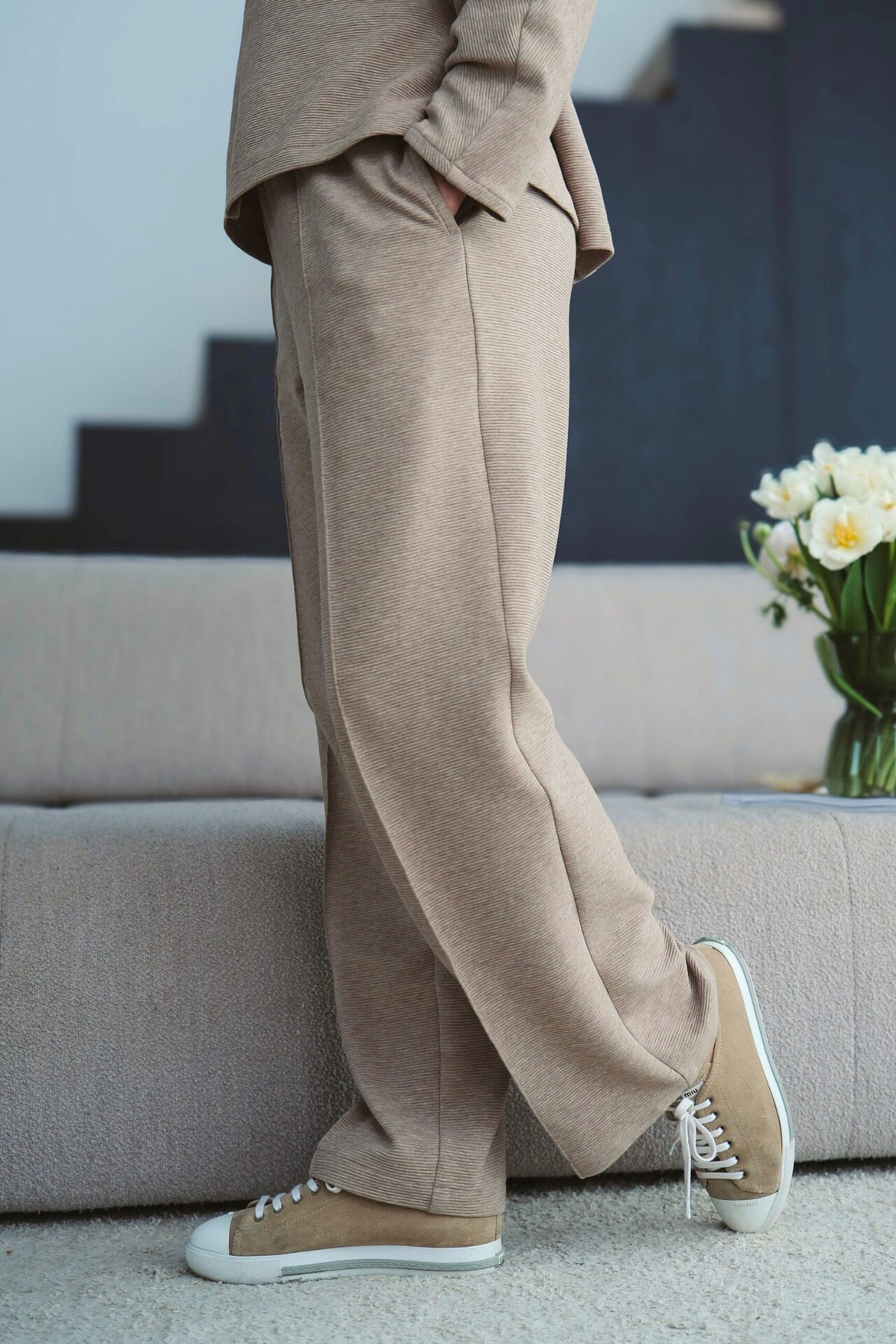 Kangas on pehme, hingav ja nahasõbralik. Puuvilla ja elastaani segu annab kangale kerge elastsuse, mis tagab mugavuse ning aitab pükstel paremini vormi hoida.