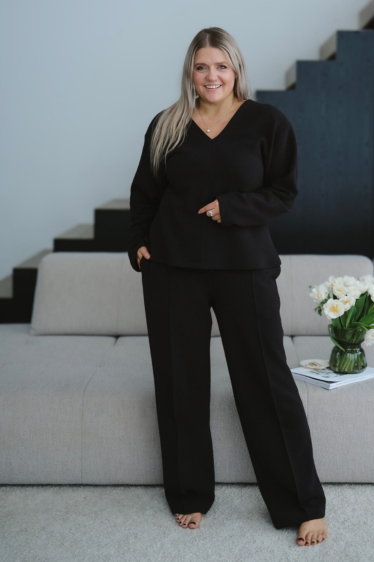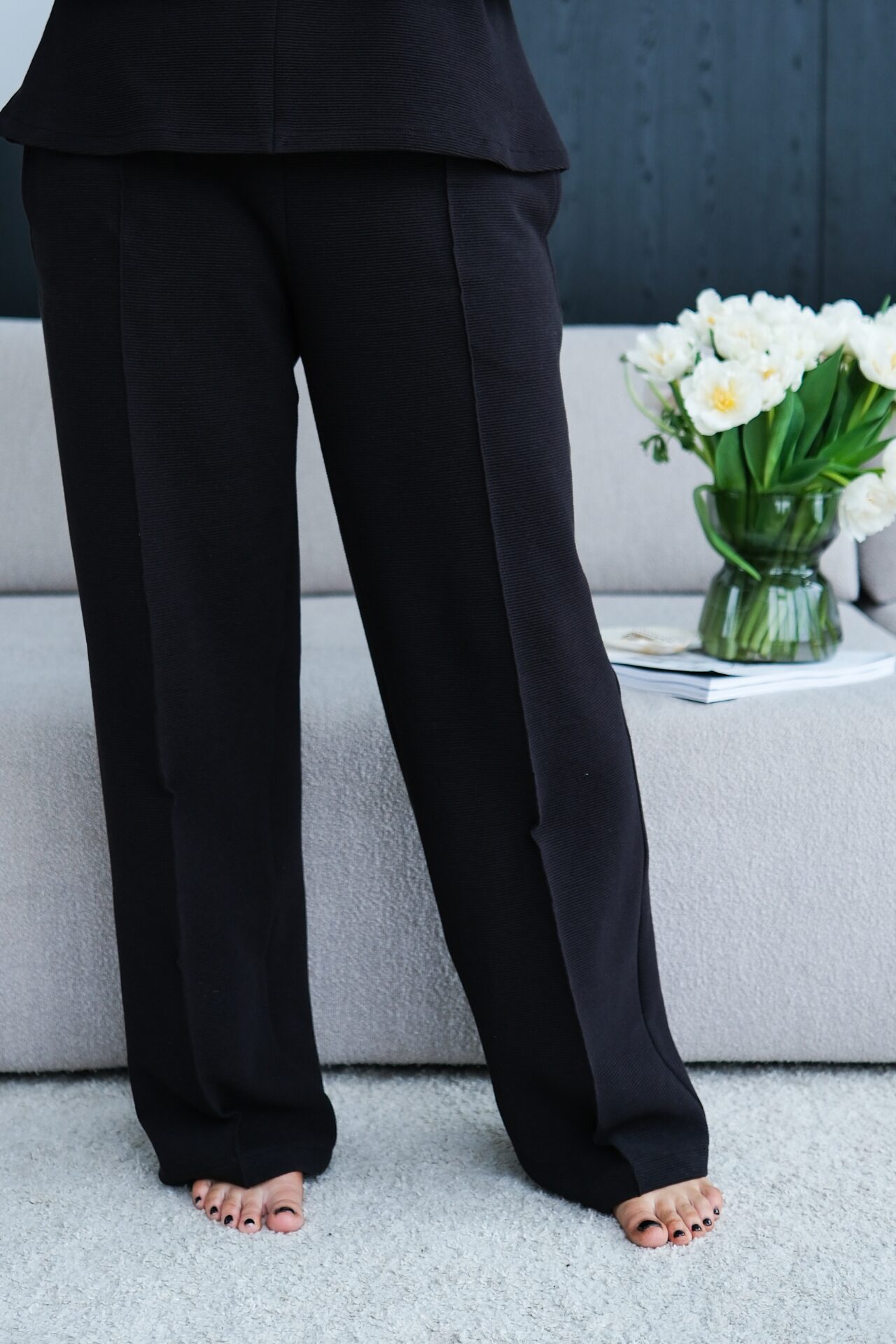 Ei. Kuigi püksid on loodud sobituma sama kollektsiooni pluusi ja kimono-jakiga, saab neid väga hästi kombineerida ka teiste garderoobiesemetega, näiteks t-särgi, kampsuni või bleiseriga.