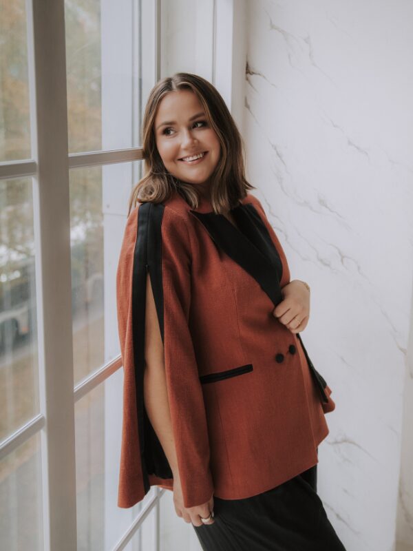 Hetkel on pintsak saadaval kahes värvitoonis – telliskivipunane ja must – et leida ideaalne sobivus nii sinu garderoobi kui ka isikliku stiiliga.