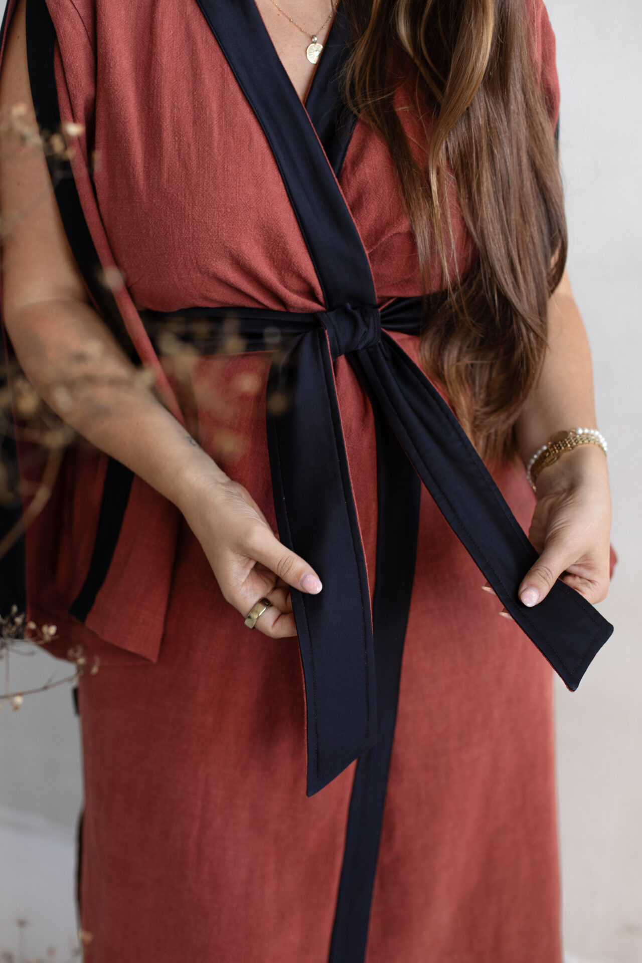 Linane pikk kimono vööga