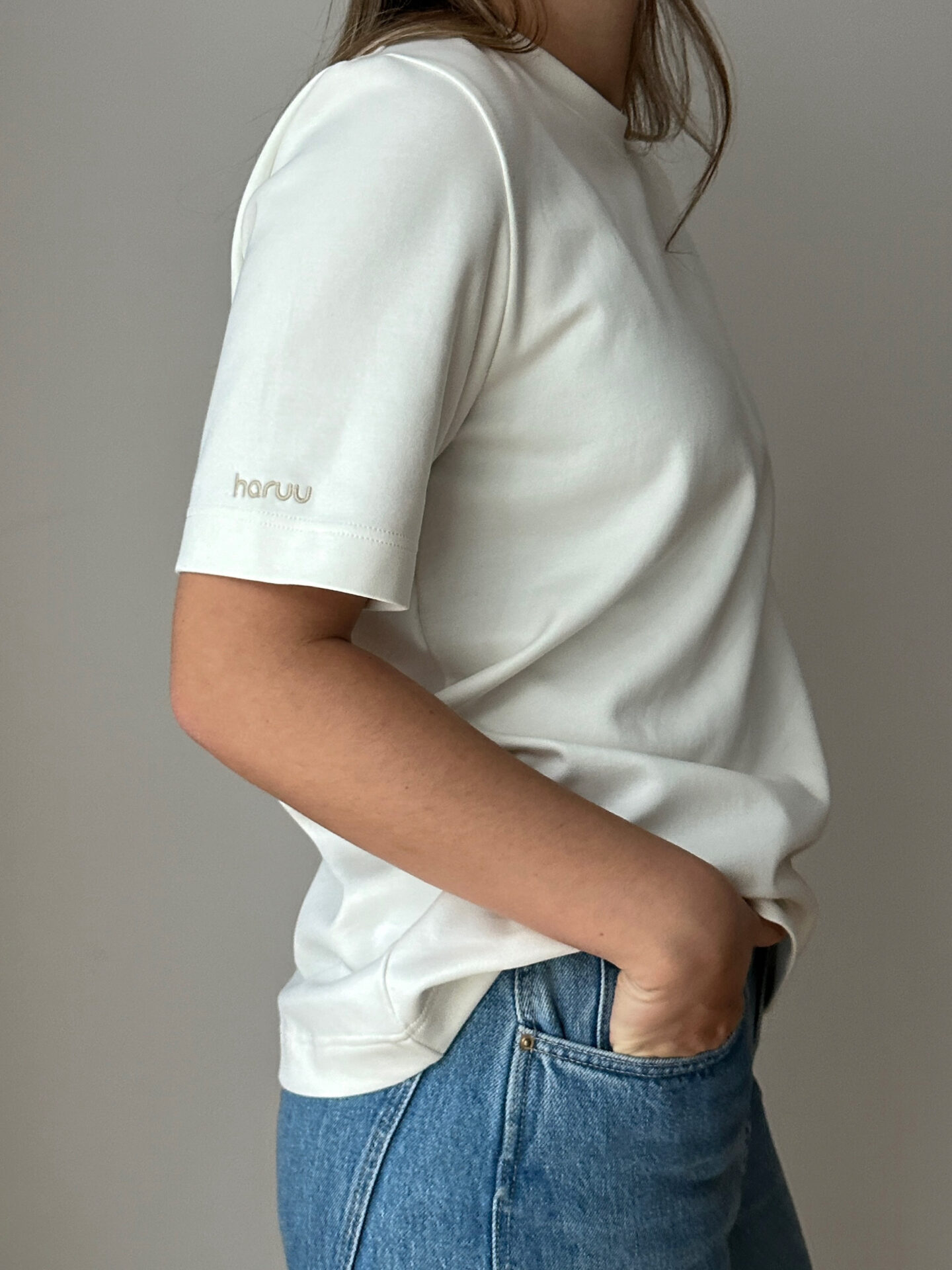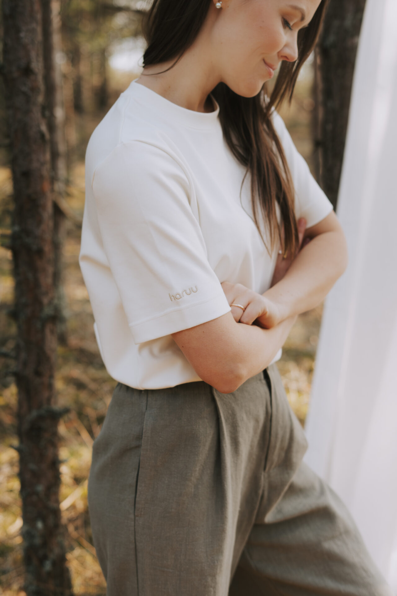 Haruu on loonud t-särgi, mis on ülimalt lihtne, kuid samal ajal stiilne ja ajatu! Haruu t-särk on tõeliselt mitmeotstarbeline riideese ning iga kapselgarderoobi alustala. Kanna seda vabas vormis teksadega või lisa pluus pidulikuma ürituse tarbeks pintsaku või bleiseri alla – Võimalusi on lõputult!